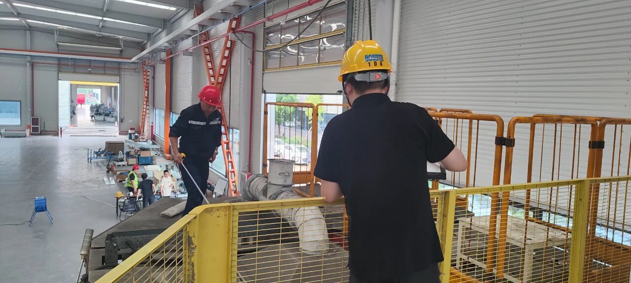 此次,客戶湖州長興廠區第二車間有新的生產設備進場,博斯德接到通知,立馬安排了技術、安裝工程師趕赴現場進行勘察與測量。此前,已對湖州長興廠區第一車間進行了精準的勘察與測量。
